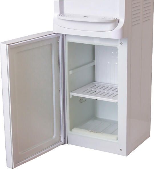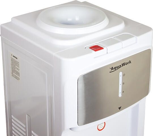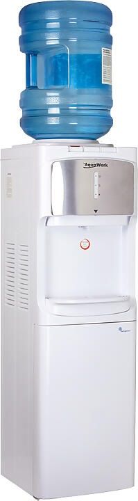 Аккуратный напольный кулер для воды Aqua Work R83-B со встроенным холодильником, нагревом, компрессорным охлаждением и дополнительной возможностью набора воды комнатной температуры.