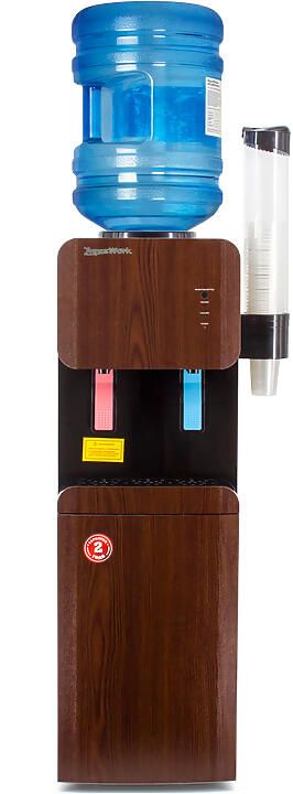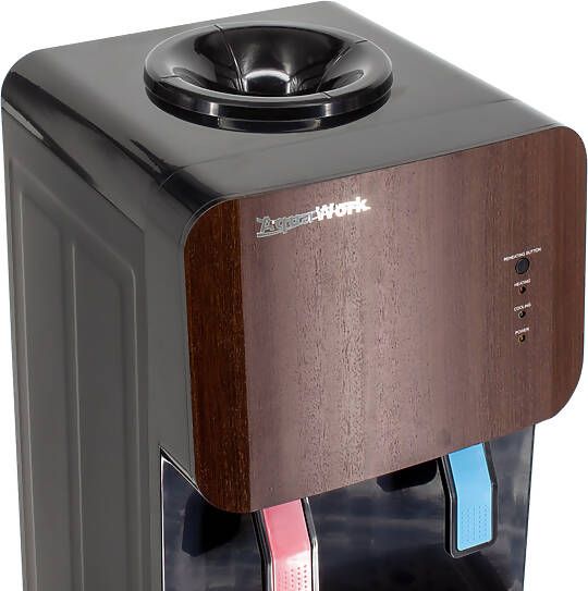 Напольный кулер для воды Aqua Work 105-LDR с нагревом, электронным охлаждением и небольшим встроенным шкафчиком объемом ~9.5 литров. Используемая в этом аппарате технологичная электронная система способна охлаждать воду на 12-14 градусов от температуры помещения.