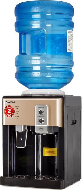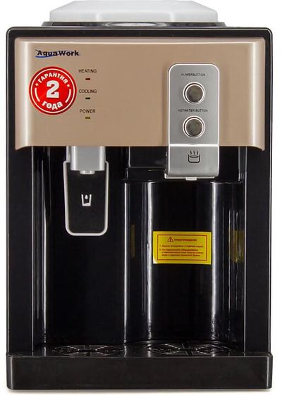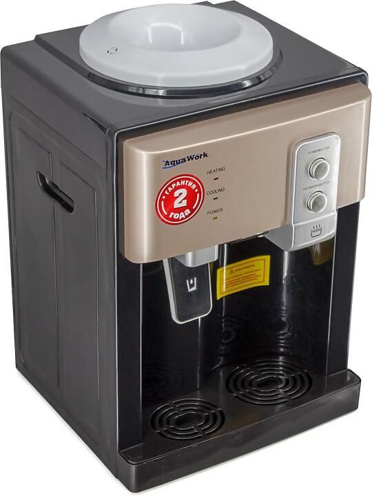 Компактный настольный кулер для воды Aqua Work 19-TD с нагревом и электронным охлаждением в корпусе оригинальной формы.