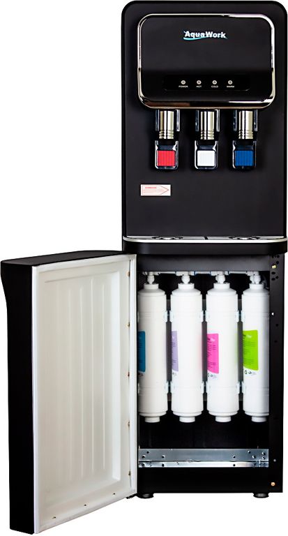 Напольный проточный пурифайер Aqua Work V93-WE с нагревом и электронной системой охлаждения. Очищает водопроводную воду при помощи встроенной системы UF-фильтрации.