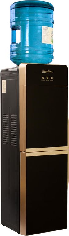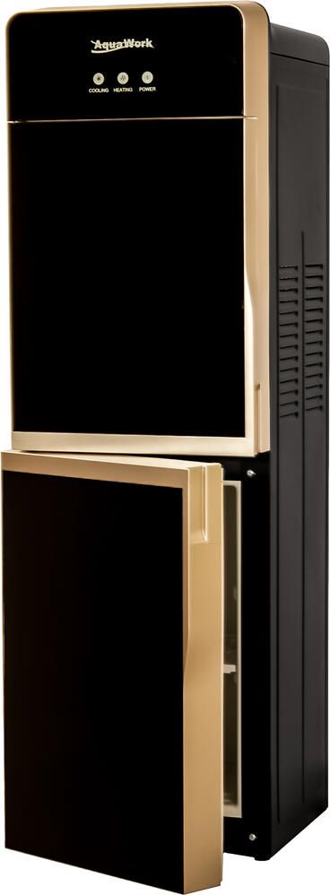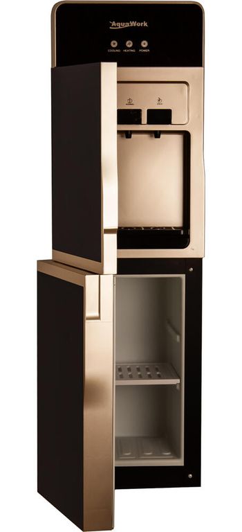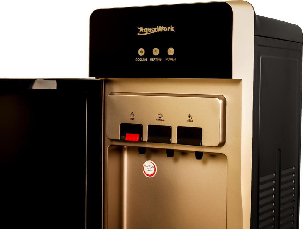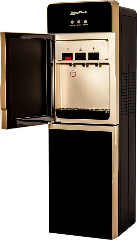 Напольный кулер для воды Aqua Work DR85-W с нагревом, электронным охлаждением, шкафчиком и дверцей для защиты зоны розлива.