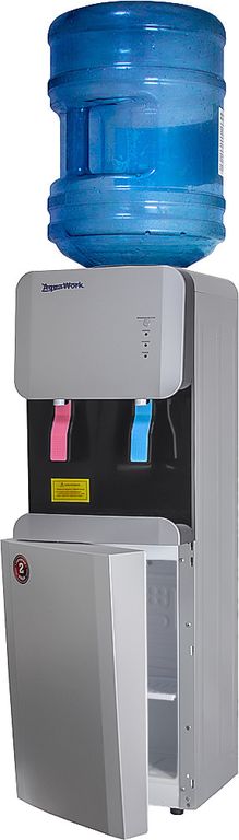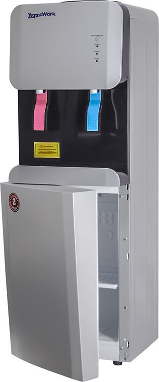 Напольный кулер для воды Aqua Work 105-LRX с нагревом, компрессорной системой охлаждения и небольшим холодильником на 20 литров.
