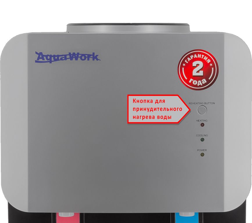 Как и другие аппараты с префиксом R в кодировке модели, диспенсер для воды Aqua Work 105-LRX собирается на производственных мощностях Аква Маркета в России.