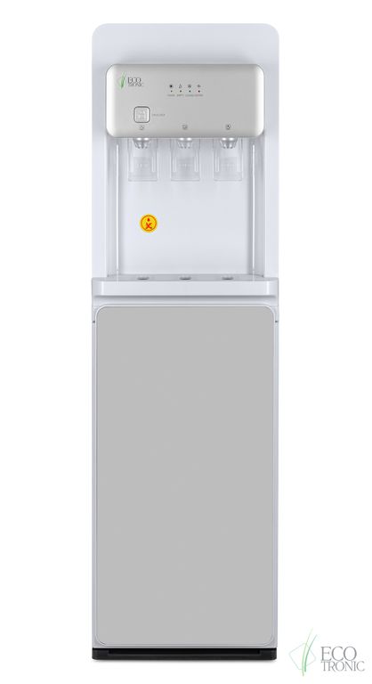 Модель с электронным охлаждением, со стандартной производительностью. Есть индикация работы аппарата, нагрева, охлаждения и необходимости заменить бутыль.