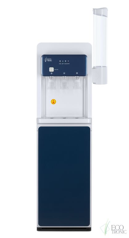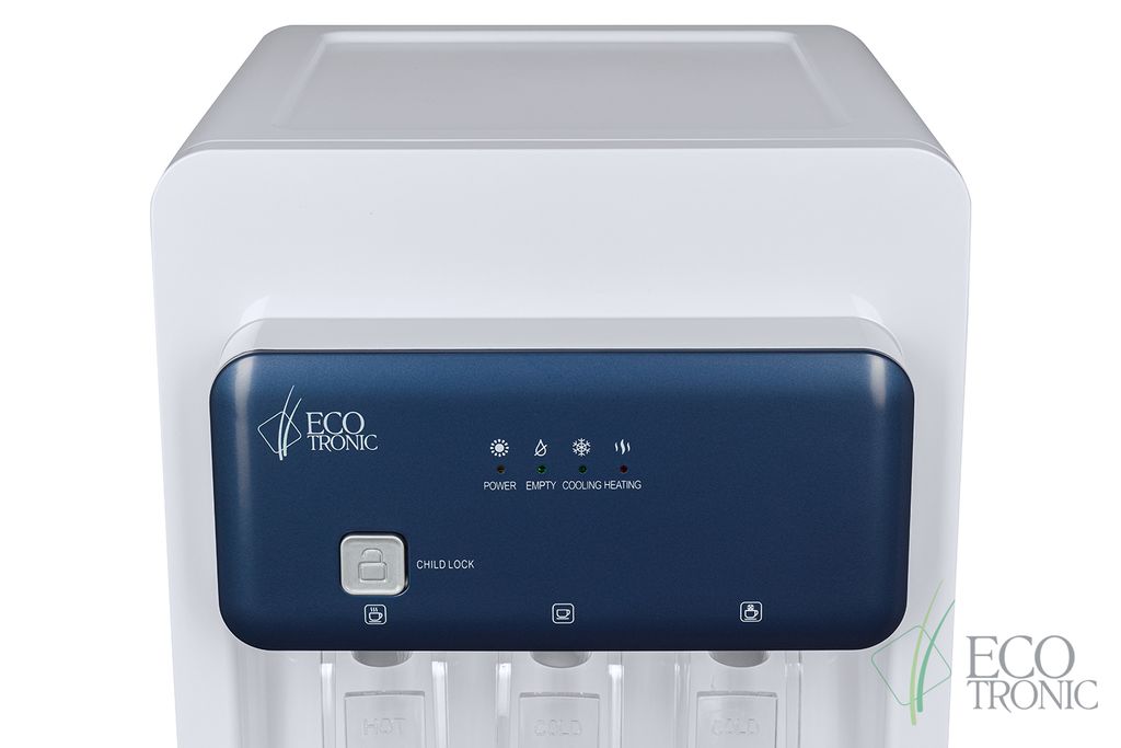 Модель с электронным охлаждением, со стандартной производительностью. Есть индикация работы аппарата, нагрева, охлаждения и необходимости заменить бутыль.