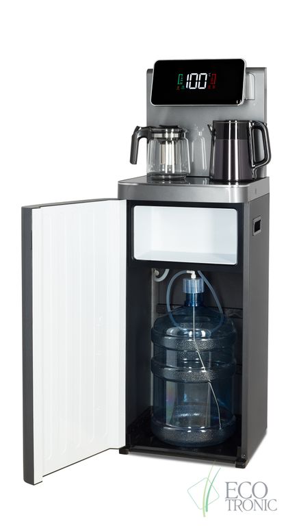Тиабар Ecotronic TB45-LE graphite — это напольный кулер с чайным столиком с электронным охлаждением. Нижняя загрузка бутыли. Два чайника — для кипячения и заварочный. Нагрев воды в чайнике до 100°С. Шкафчик для хранения.