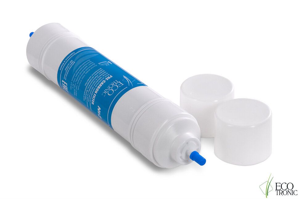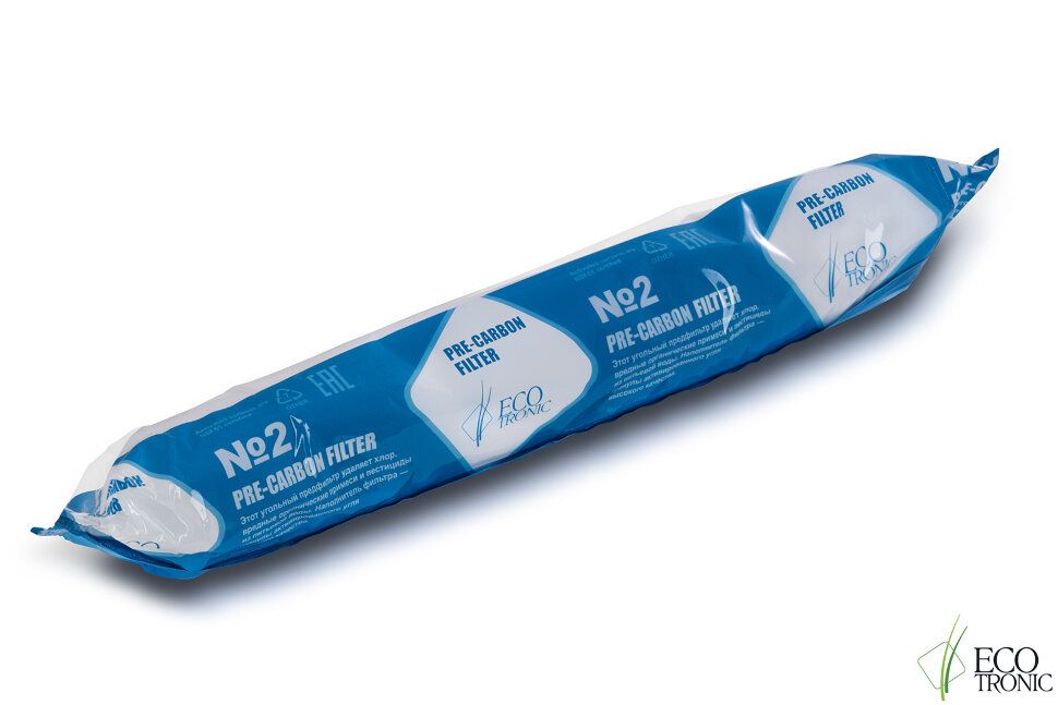Фильтр #2 Ecotronic Pre-carbon 14”. Угольный пре-фильтр. Пр-во Mitsubishi, Japan. Размер 14 дюймов. Ресурс до 12500 литров в зависимости от качества исходной воды. Рекомендуемая замена: 6 месяцев. Имеет выходы для быстрого соединения типа цанга-цанга. Может использоваться в любых моделях пурифайеров Ecotronic.