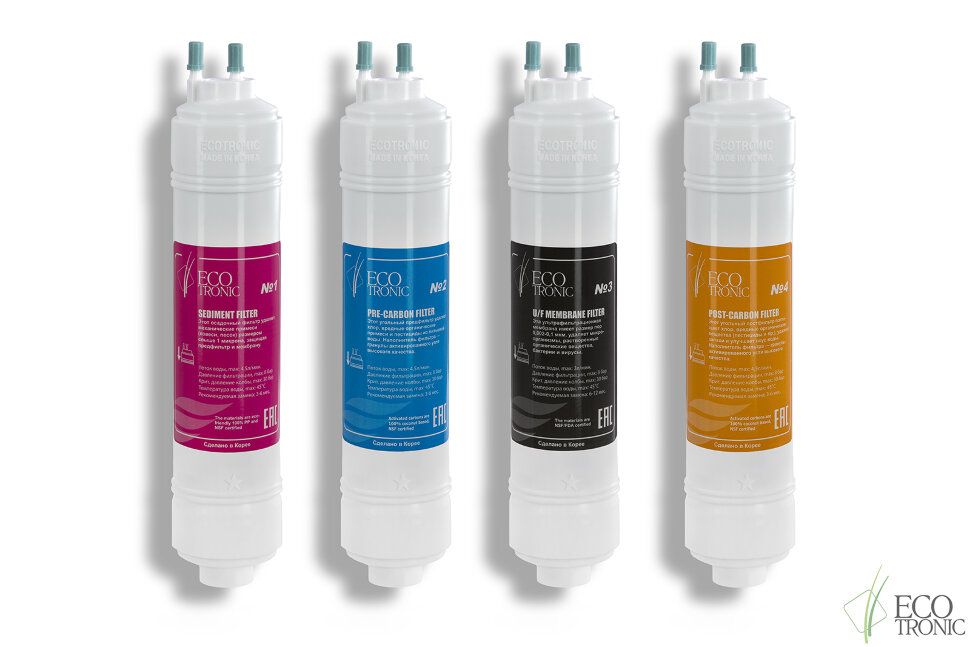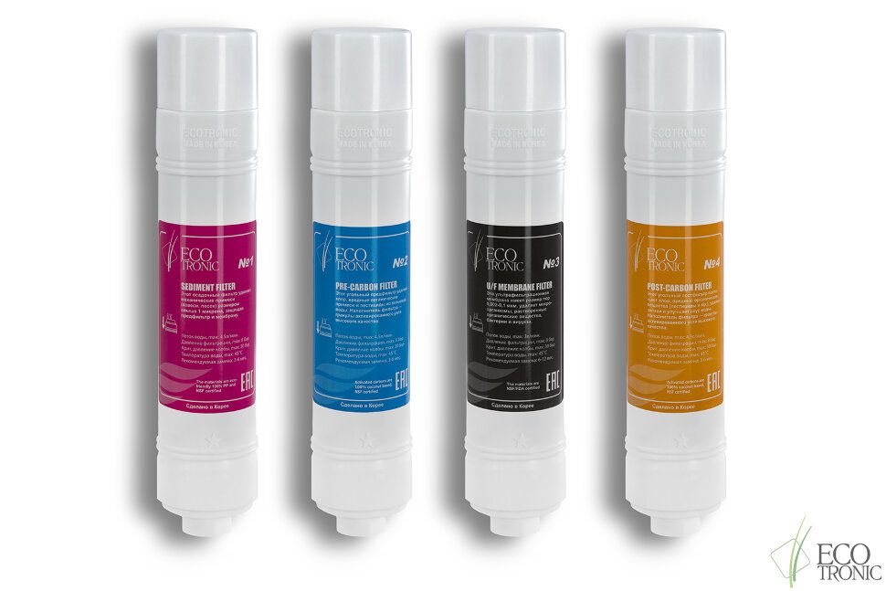 Комплект фильтров с UF мембраной (12 дюймов) Комплект сменных фильтров (картриджей) для настольных и напольных пурифайеров с ультра-фильтрационной мембраной (UF). Подобные пурифайеры маркируются после дефиса xx-U4L или xx-U4T, где xx - серия и номер модели, U - ультрафильтрация, 4- ре ступени очистки, L или Т - напольный или настольный. Рекомендуемая замена фильтров: не реже 1 раза в 6 месяцев. Ресурс каждого картриджа до 10 тыс. литров в зависимости от качества водопроводной воды. При большом потреблении (в больших офисах, фитнесах и т.п.) фильтры могут меняться 1 раз в 3 или 2 месяца. Размер: 12 дюймов. Пр-во Юж. Корея.