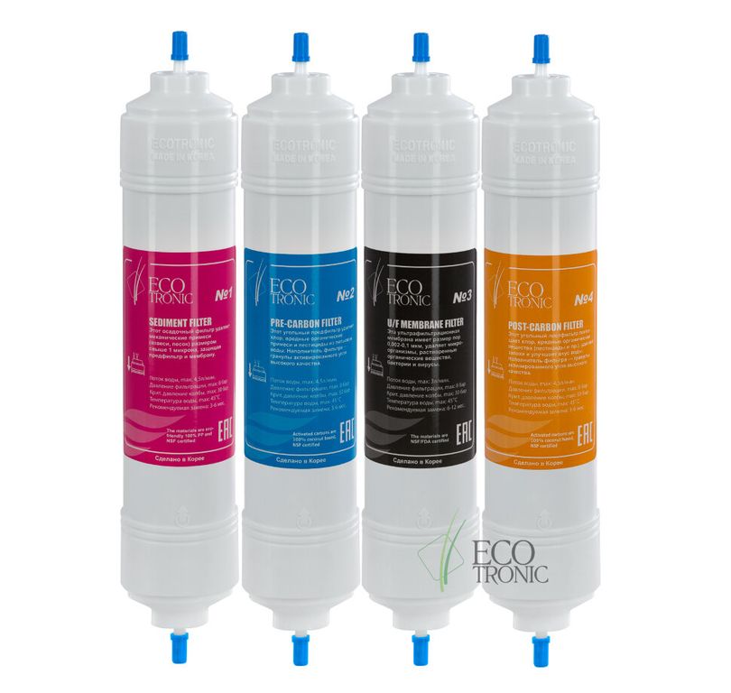 Комплект фильтров с UF мембраной (14 дюймов) Комплект сменных фильтров (картриджей) с повышенным ресурсом для пурифайеров с ультра-фильтрационной мембраной (UF). Подобные пурифайеры маркируются после дефиса xx-U4L, где xx - серия и номер модели, U - ультрафильтрация, 4-ре ступени очистки, L - напольный. Рекомендуемая замена фильтров: не реже 1 раза в 6 месяцев. Ресурс каждого картриджа до 12500 л. в зависимости от качества водопроводной воды. При большом потреблении (в больших офисах, фитнесах и т.п.) фильтры могут меняться 1 раз в 3 или 2 месяца. Размер: 14 дюймов. Пр-во Юж. Корея.