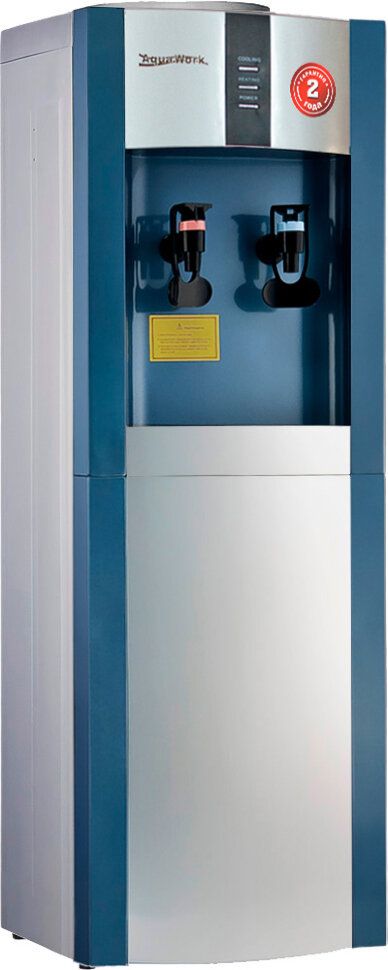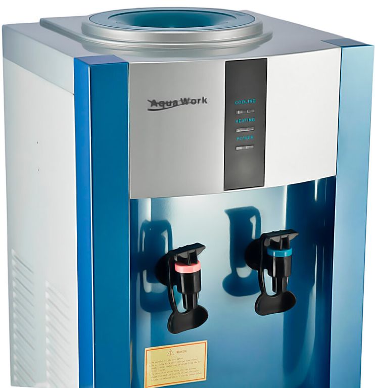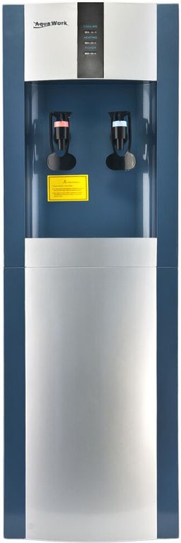 Напольный кулер для воды с функциями нагрева и охлаждения. С верхней загрузкой бутыли. Электронное охлаждение. Краны «нажим кружкой». Простой аппарат "без наворотов".