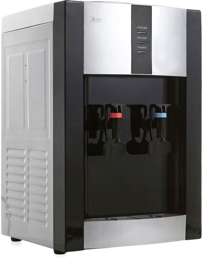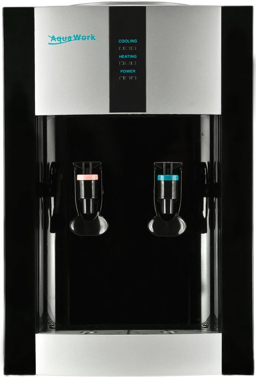 Небольшой компактный настольный водный кулер Aqua Work 16-T/EN с компрессорной системой охлаждения питьевой воды из установленной сверху бутыли.