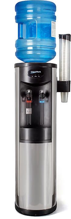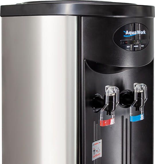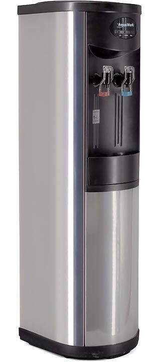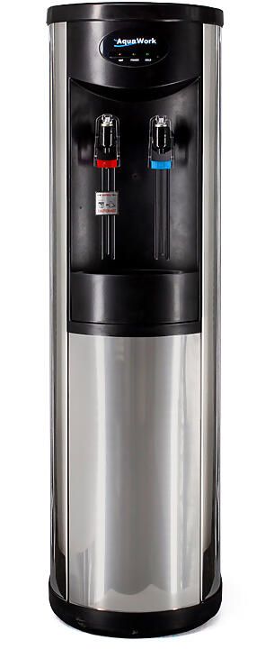 Высокий напольный кулер для воды Aqua Work 1C с нагревом и компрессорным охлаждением в стальном корпусе.