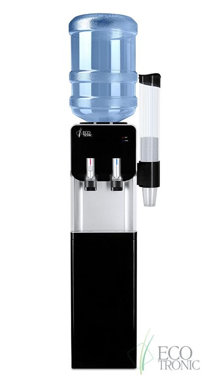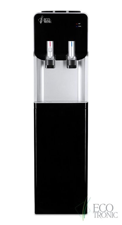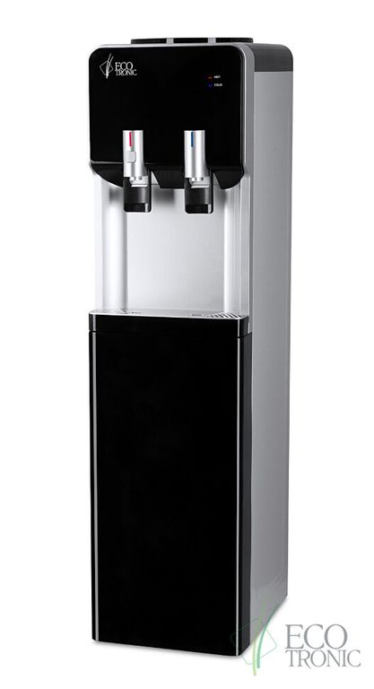 Кулер Ecotronic M40-LF с холодильником. Компрессорное охлаждение. Долговечный и практичный цельнотянутый бак холодной воды: поскольку нет сварных швов, меньше вероятность появления ржавчины со временем. Стабильную работу системы охлаждения воды и холодильника обеспечивает наличие второго термостата для холодильника. Корпус серебристого цвета, передняя панель черная с серебряной вставкой. Защита от детей на кране г\в. Индикация режимов нагрева, охлаждения и готовности воды. Краны «нажим кружкой».
