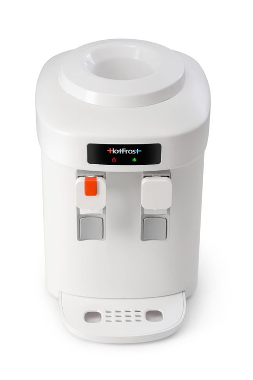 Настольный кулер в белом цвете - HotFrost D65E. HotFrost D65E привнесет в Ваше пространство ноты изящности и уюта. Кулер придётся по душе большинству пользователей, которые наряду с качеством ценят комфорт, который привносит техника в повседневную жизнь. Аппарат впишется в дизайн любого помещения и не займет много места, достаточно небольшой части столика или подставки. HotFrost D65E предоставит в Ваше распоряжение как горячую воду, так и охлажденную воду. Если у Вас небольшая семья или же офис с 3-5 сотрудниками, то данный аппарат прекрасно справится с быстрой подачей воды. Если Вы из тех, кто продумывает все до мельчайших деталей, то HotFrost D65E обязательно покорит Ваше сердце.