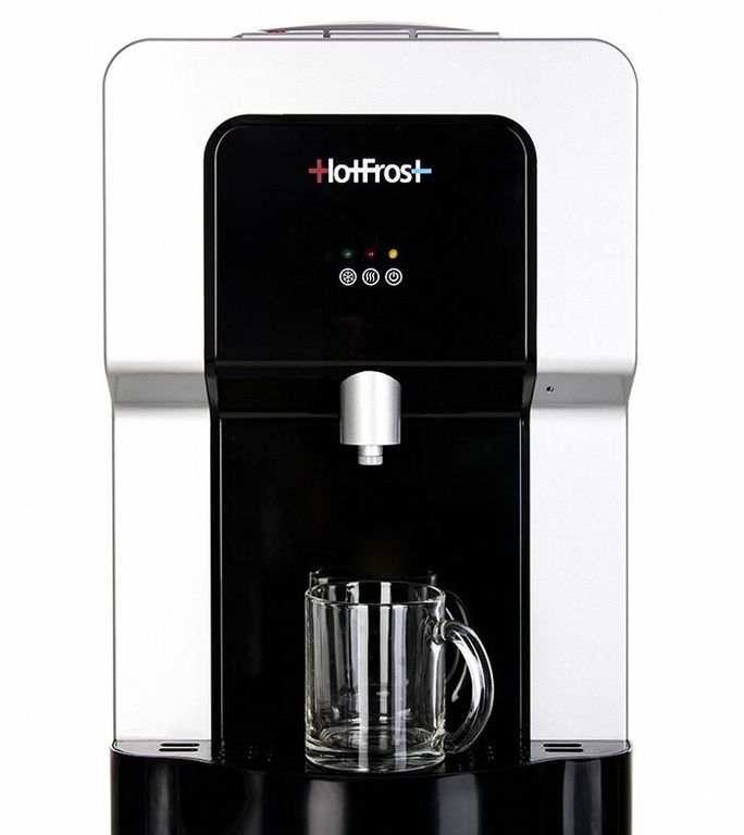 На российском рынке практически невозможно встретить аналог подобным моделям по качеству сборки. Вся «начинка» — баки, компрессор, трубки — все сделано из высококлассных материалов и с потрясающим качеством сборки, благодаря которому мы со спокойствием даем 2 года гарантии на данную модель кулера. HotFrost V900 CS отличается нестандартным высоким «ростом», что сделает его использование весьма комфортным. Кроме этого, данный кулер отличается от других моделей тихим компрессором. На передней панели присутствует 3 кнопки подачи воды: почти ледяной, горячей и прохладной (примерно +15°C). В этом кулере также установлена кнопка подачи горячей воды с функцией защиты от детей, что делает пользование HotFrost V900 CS абсолютно безопасным для родителей и их маленьких чад.