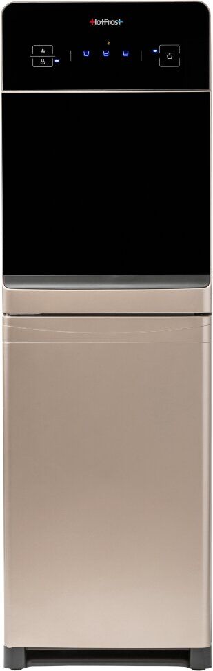 Уникальность кулера HotFrost 350 ANET выражается в легком управлении опциями сенсорной панелью, а термоэлектрическое охлаждение обеспечивает бесшумность работы системы. Цвет шампань-металлик в комбинации с черным смотрится аристократично и гармонично вписывается в роскошные интерьеры. Нижняя загрузка (размещение бутыли в шкафчике) – это наиболее удобный и эстетичный способ установки бутыли, который защитит Вашу воду от прямых солнечных лучей и сохранит ее свежей и полезной. И самый необычный элемент кулера HotFrost 350 ANET – это маленький литровый чайник, которым мы традиционно привыкли пользоваться для заваривания чая и прочих напитков. Высокая мощность нагрева 1100 Ватт обеспечивает производительность нагрева горячей воды до 8 литров в час, температура горячей воды достигает практически точки кипения - 99 °C. Прозрачная дверца, прикрывающая зону подачи воды, придает дополнительную легкость внешнему виду аппарата.