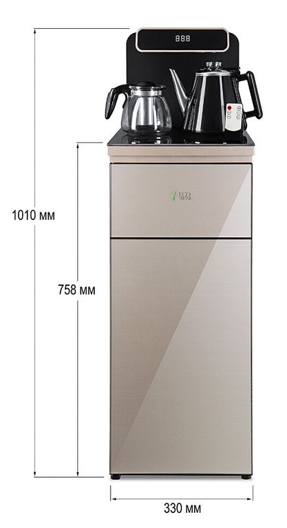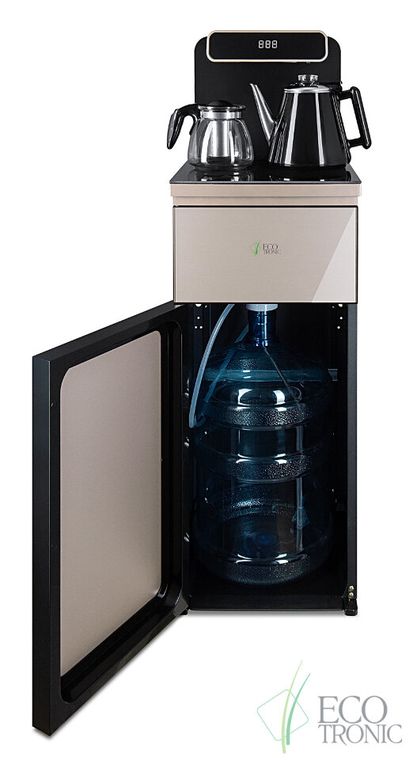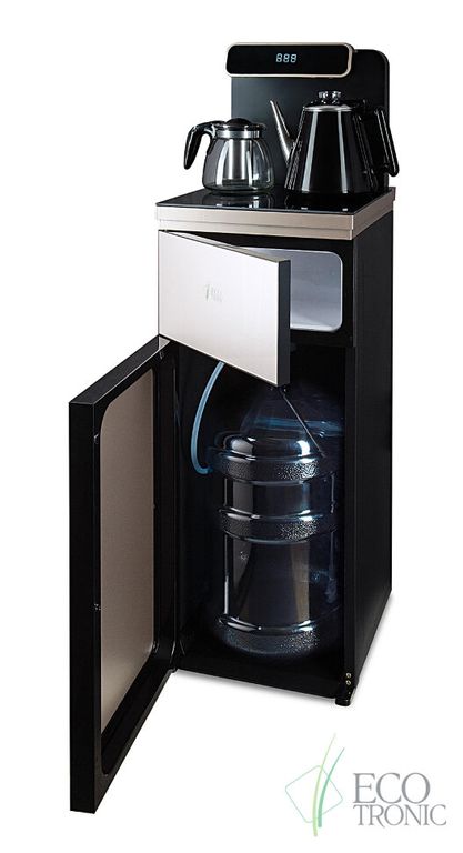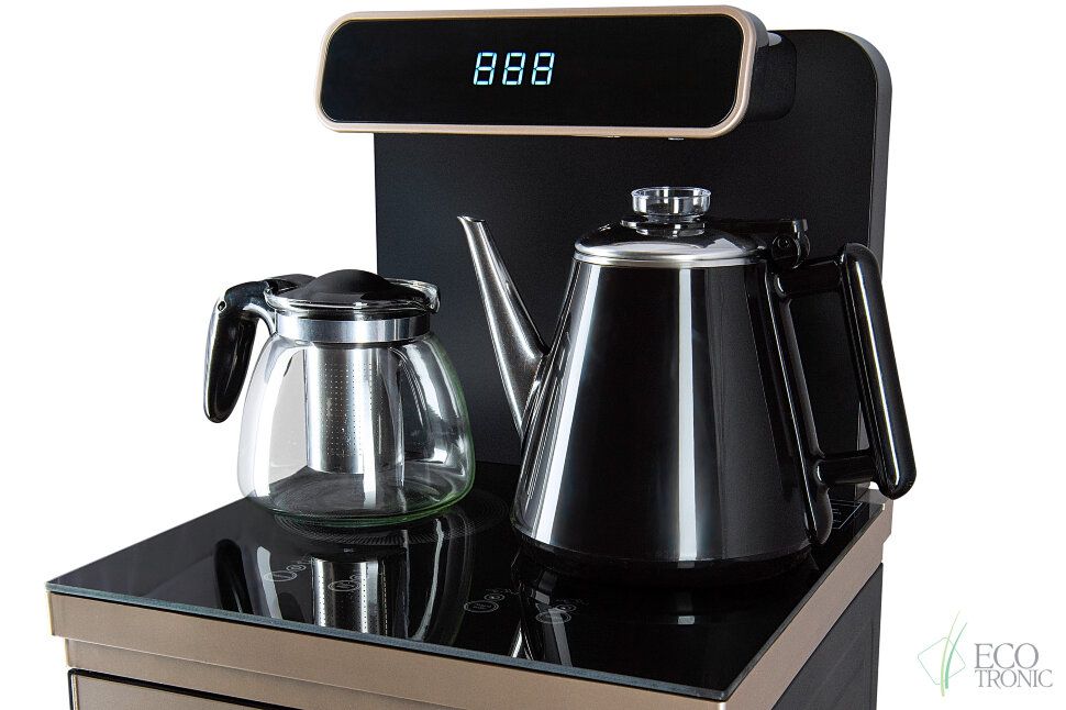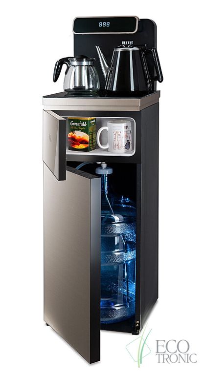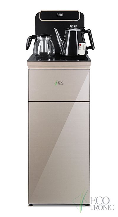 Тиабар Ecotronic TB10-LNR gold – это напольный кулер с чайным столиком. Пульт дистанционного управления. Нижняя загрузка бутыли. Два чайника – для кипячения (изотермический) и заварочный. Без охлаждения, только нагрев. Нагрев воды в чайнике до 100°С. Шкафчик для хранения.
