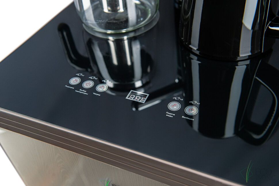 Охлаждение воды включается отдельной кнопкой, но можно задать поддержание охлаждения в автоматическом режиме. Панель управления сенсорная.