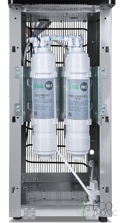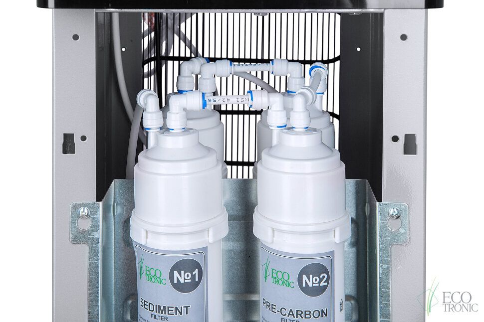 Пурифайер Ecotronic M40-U4L black+silver с ультрафильтрацией. 4-х ступенчатая система очистки на основе мембраны UF. Долговечный и практичный цельнотянутый бак холодной воды: поскольку нет сварных швов, меньше вероятность появления ржавчины со временем.