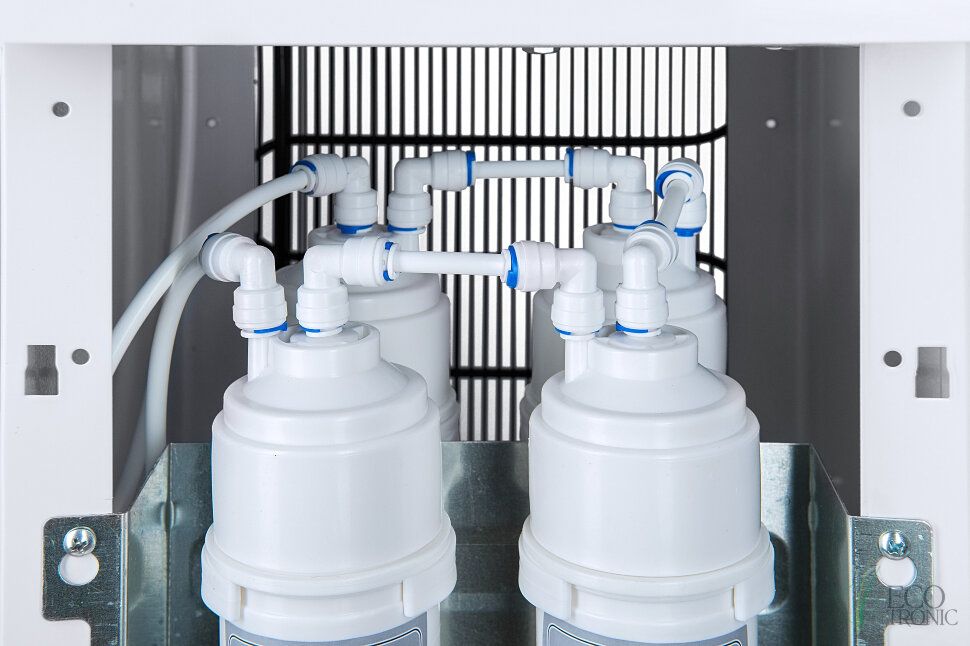 Пурифайер Ecotronic M40-U4L white+black с ультрафильтрацией. 4-х ступенчатая система очистки на основе мембраны UF. Долговечный и практичный цельнотянутый бак холодной воды: поскольку нет сварных швов, меньше вероятность появления ржавчины со временем.