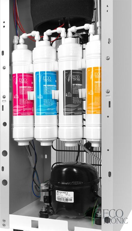 Белый с серебристой передней вставкой, Аппарат с 4-х ступенчатой UF фильтрацией с увеличенным баком горячей воды 5л, холодной воды 6,2л., и мощностью нагрева 1000Вт. Производство Юж.Корея.