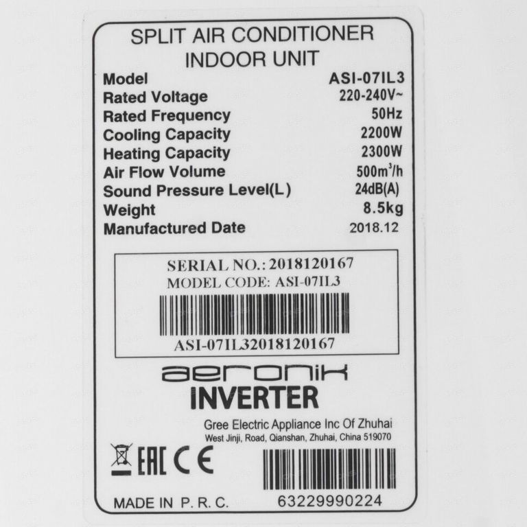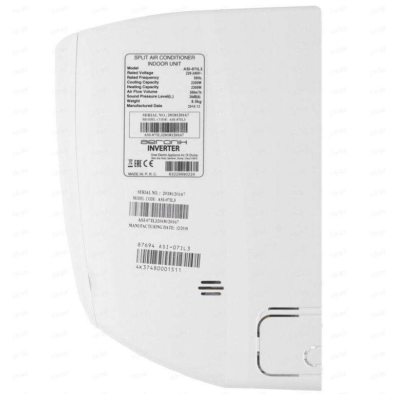 Сплит-система Aeronik ASI-07IL3/ASO-07IL1 рассчитана на охлаждение и обогрев помещений, размер которых не превышает 20