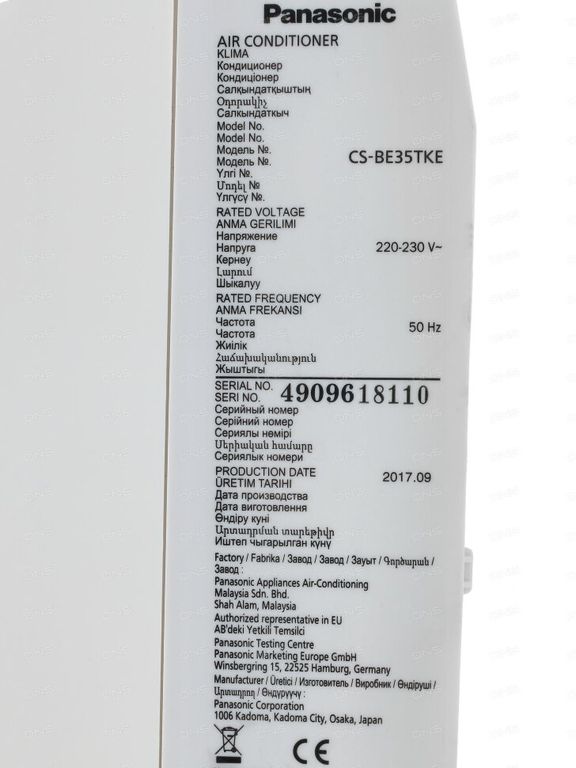 Сплит-система PANASONIC CS/CU BE 35 TKE – то, что нужно, когда перед вами встает проблема создания оптимального климата в помещении. Ведь это устройство способно осушить излишнюю влагу, обогреть помещение до 35 м², охладить, когда жара становится невыносима, а также провентилировать воздух. И даже при низкой температуре снаружи вы можете использовать функцию «теплый старт», чтобы по помещению сразу циркулировал теплый воздух. Рабочий диапазон температур при охлаждении: макс. 43° С, мин. 5° С. При обогреве эти показатели составляют: макс. 24° С, мин. - 15° С. PANASONIC CS/CU BE 35 TKE обладает классом энергопотребления А+, что делает систему экономичным прибором. Для удобства использования можете прибегнуть к функциям таймера.