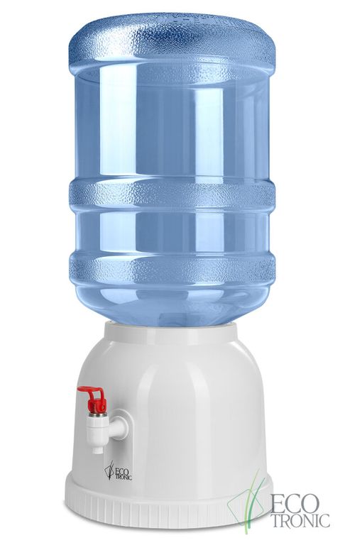 Диспенсер Ecotronic L2-WD для раздачи воды. Настольный, без нагрева и охлаждения. Цвет белый. Кран "нажим рукой". Кран подачи воды имеет конструкцию, предотвращающую скручивание, и металлический стержень для долговечной работы.